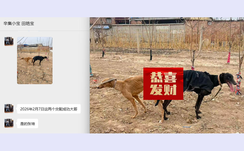2026年2月7日内乡张培的格力犬种母黄鹰使用辛集小宝的格力犬种公迷人王配种