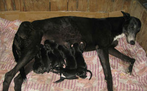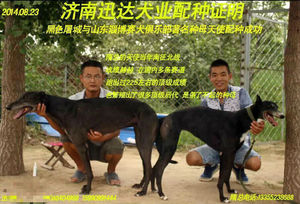 2014年8月23日淄博隋永军的格力犬种母天使使用济南张虎的格力犬种公黑色屠城配种,并于2014年10月25日产下一窝7条夭折1条,存活4公2母